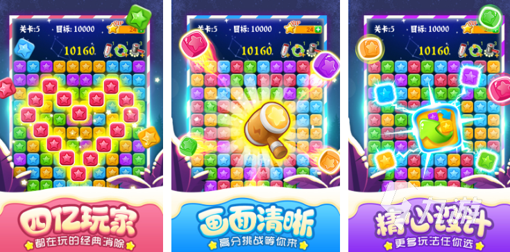 这款游戏不仅有经典的点击消除,还加入了俄罗斯方块的拼接消除,关卡里还有各种障碍和解谜玩法,甚至还有全新的连线消除。画面精美,音效动听,玩法多样,难度适中,让你在消除的乐趣中体验不一样的刺激。快来试试消灭星星全新版,重新爱上星星消消乐!