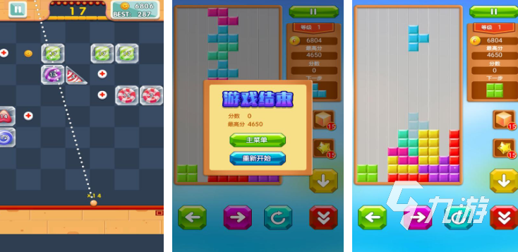 这是一款独具创意的俄罗斯方块游戏,与传统俄罗斯方块直接下落的版本不同的是,你可以拖动棋牌外的各种方块进入棋盘内来连成一行进行消除,也可以玩三消类模式,三个同色相连即可消除得分,让你感受不同模式的游戏乐趣,。这款游戏非常富有娱乐性,非常适合打发无聊时间。